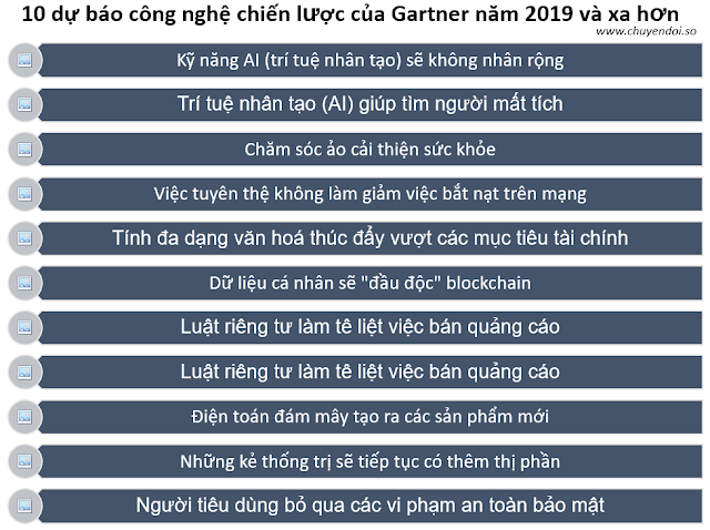 | 10 dự báo công nghệ chiến lược 2019 & xa hơn của Gartner. Nguồn ảnh: Gartner |